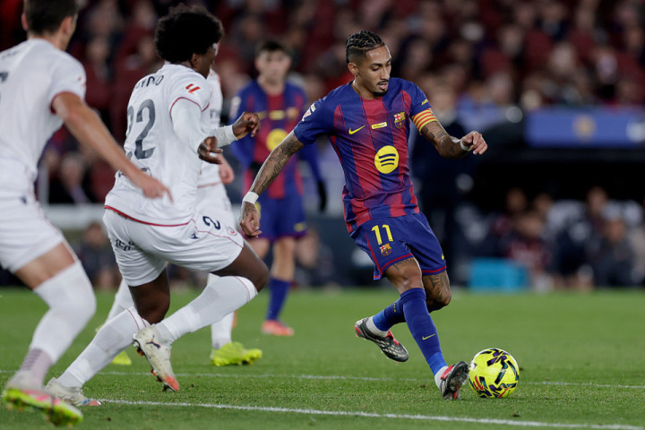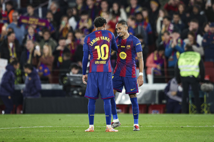 进攻端简直杀疯了!对阵奥萨苏纳全场控球率压着对手打,拉菲尼亚本场独中两元成为赢球最大功臣。亚马尔哪怕没进球,照样靠着全场穿插组织拿 MVP,把对手防线搅得鸡犬不宁。